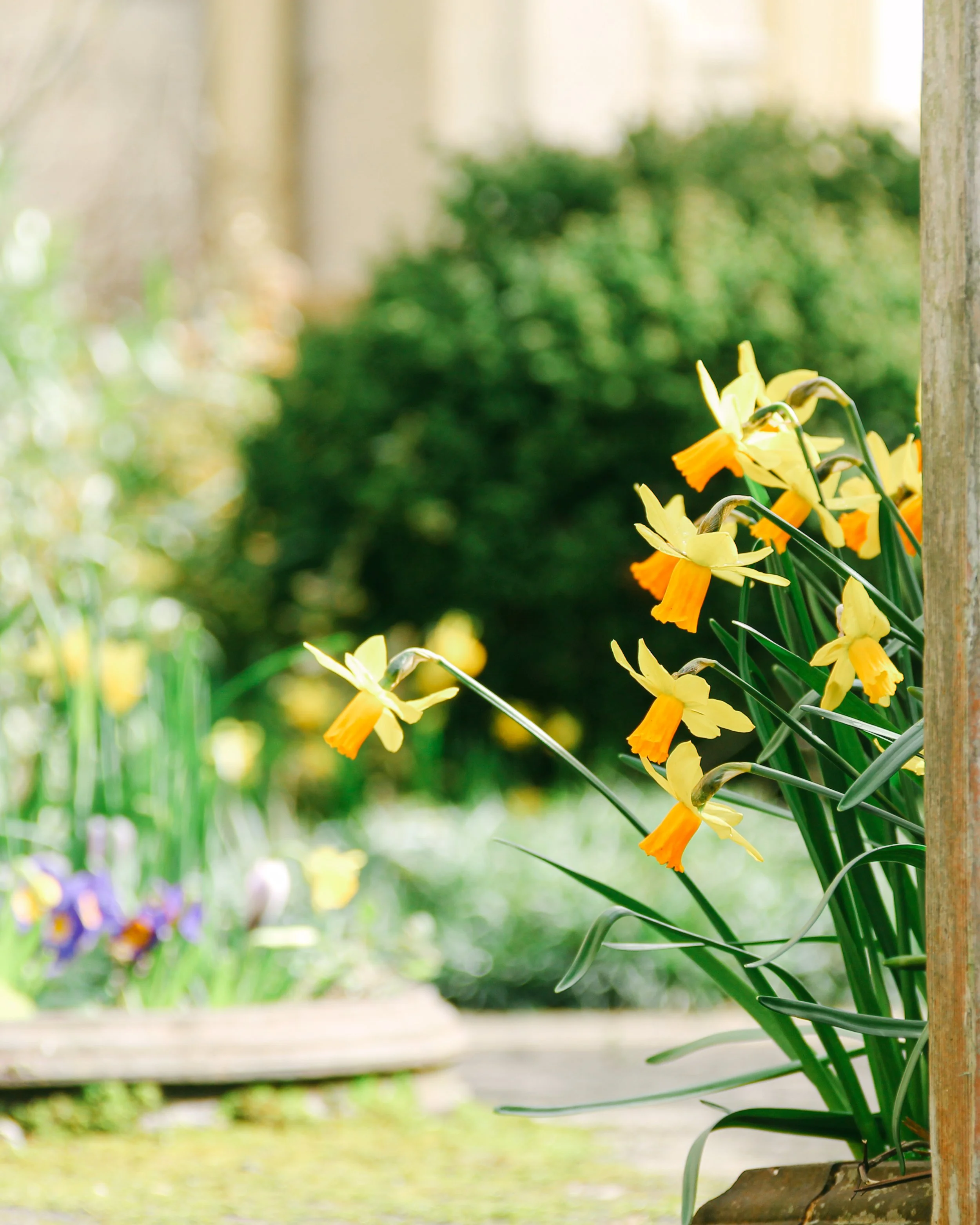 March doesn’t tiptoe. Daffodils take over entire verges as if someone whispered “it’s your time” and they absolutely ran with it. Narcissus pseudonarcissus — the wild ones — throw their heads back in ditches and churchyards, brighter than feels strictly necessary. Jonquils follow, smaller but no less pleased with themselves.